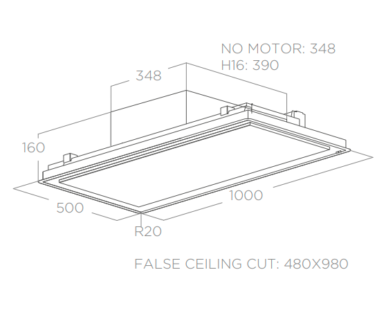 ELICA ILLUSION NO MOTOR @ je stropní odsavač par (digestoř) navržený designérem společnosti ELICA FABRIZIO CRISA . ELICA ILLUSION je vyroben z černého matného lakovaného rámečku + černého matného lakovaný středový panel. Dálkové ovládání je součástí balení. Samozřejmostí je signalizace nutnosti čištění tukových a uhlíkových filtrů.