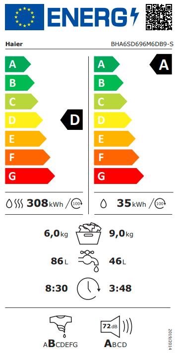 Třída energetické účinnosti praní + sušení D
